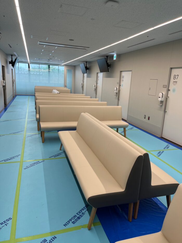 また外来の診察室や検査室の前にはソファが並べられました。