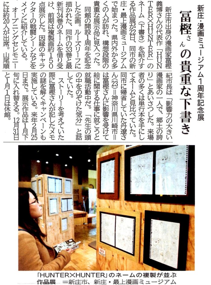 これを記念して、新庄市出身で、新庄市のマスコットかむてんをデザインした冨樫義博さんの「 HUNTER×HUNTERネーム展」が開催されています。